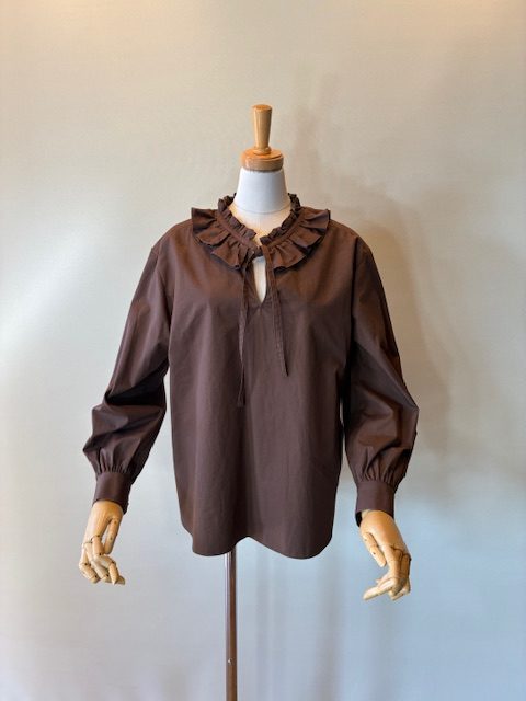 立体的なラッフルカラーと2wayボタンがアクセント。