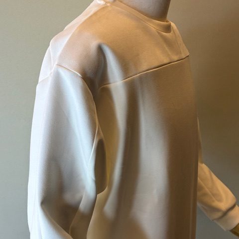 しなやかなストレッチスエードとソフトでハリのあるダンボールニット素材とのコンビネーション。スエード調素材と異素材とのコンビが生み出すコントラストが特徴です。一枚着としてはもちろん、さまざまなアイテムとのレイヤードに活躍します。 ポリエステル47% レーヨン45% ポリウレタン8% 別地 ポリエステル96% ポリウレタン4%