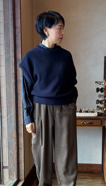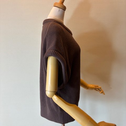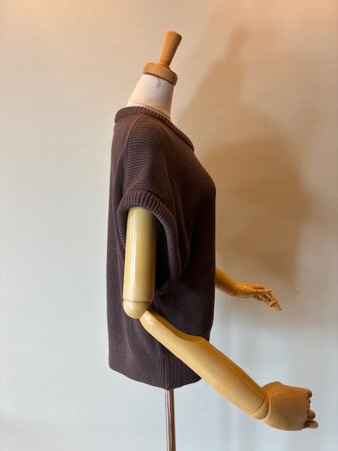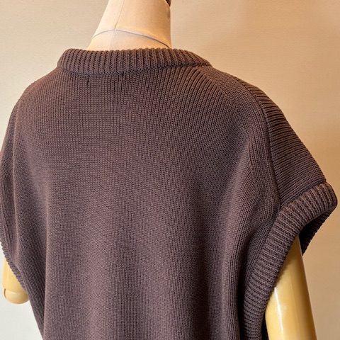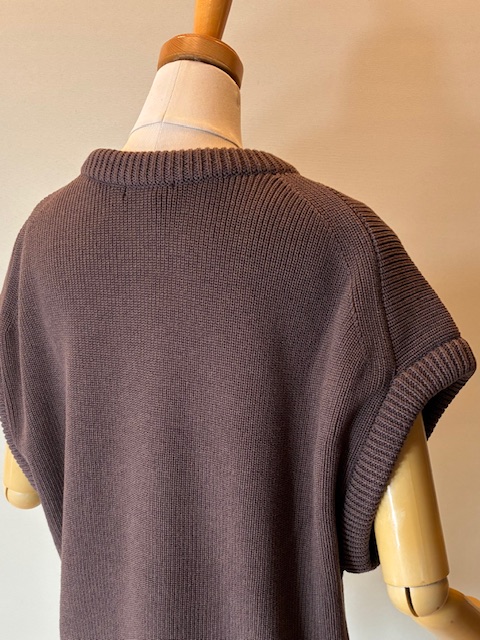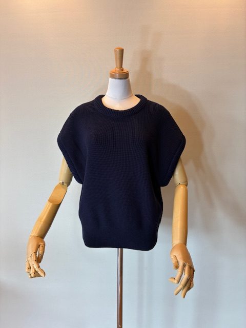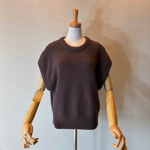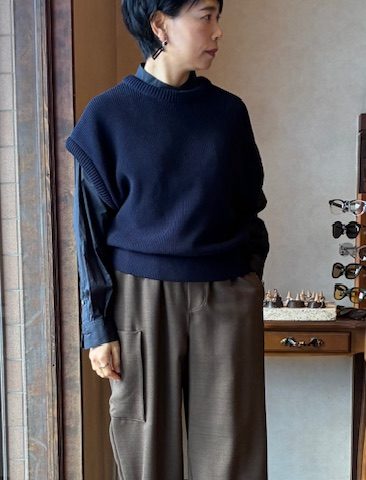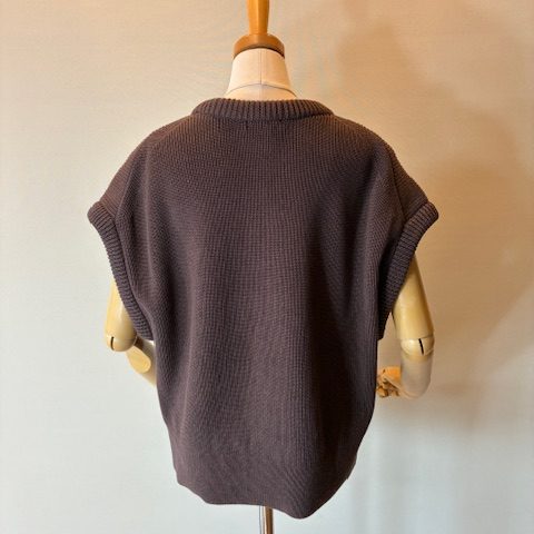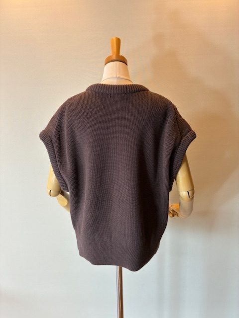 コットン糸に強撚加工を施し、きれいに目の立ったミドルゲージ畦に編みたてたニットシリーズ。ゆったりとしたシルエットと丸みのあるスリーブでリラックス感のある一着。ベスト感覚でカットソーやシャツなどとのレイヤードもおすすめで、幅広いコーディネートに活躍します。 コットン100%