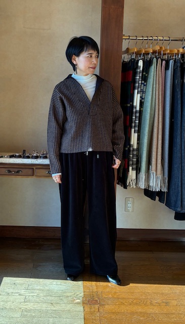LINEUP ウールスキッパープルオーバー Women'sTops ウール地に縮絨加工を施したフェルトライクな素材を使用しています。無地とギンガムチェックとのコントラストが楽しい一枚です。しっかりとした肉感にほど良くゆとりを持たせたシルエット、コンパクトな丈感でどんなボトムともバランス良く合わせていただけます。またカットソーやニットなどとのレイヤードもおすすめです。 ウール93% ナイロン5% ポリウレタン2% 品名ウールスキッパープルオーバー 品番NT-2210M ブランド MACPHEE サイズ フリー カラー グレー 価格 ¥26,400(税込) COLOR VARIATION ブラウン この商品について問い合わせる 商品 お名前(必須) メールアドレス(必須) お問い合わせ内容(必須) このサイトはreCAPTCHAによって保護されており、Googleプライバシーポリシーと利用規約が適用されます。 シェア 投稿 ブックマーク LINE Pinterest コピー HOME LINEUP MACPHEE ウールスキッパープルオーバー