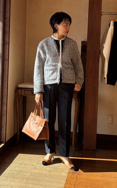 LINEUP ラメツイードジャケット Women'sTops 特殊な機械で作られた軽く光沢のある糸を、尾州で丁寧に織りあげたツイード生地を使用しています。ほど良い肉厚感がありながら軽やかな羽織り心地です。生地に織り込まれたラメやフリンジ使いが華やかさをプラスし、デイリー使いからオフィス、春のオケージョンまで幅広いシーンで活躍する一枚です。。 コットン41% アクリル27% レーヨン15% ウール12% ポリエステル5% 裏地 ポリエステル100% 品名ラメツイードジャケット 品番JK-8002Q ブランド qualite サイズ フリー カラー ブルー 価格 ¥40,700(税込) この商品について問い合わせる 商品 お名前(必須) メールアドレス(必須) お問い合わせ内容(必須) このサイトはreCAPTCHAによって保護されており、Googleプライバシーポリシーと利用規約が適用されます。 シェア 投稿 ブックマーク LINE Pinterest コピー HOME LINEUP qualite ラメツイードジャケット
