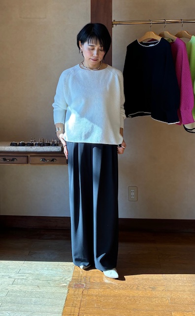 LINEUP モスステッチプルオーバー Women'sTops 清涼感のあるドライなタッチと細かな凹凸感が特徴のニットシリーズ。ワイドシルエットに肌当たりの良い素材で、着心地の良さは抜群です。シンプルながら一枚でもサマになり、幅広いスタイリングで活躍します。春らしいカラーリングも魅力です。 コットン50% ポリエステル50% 品名モスステッチプルオーバー 品番NT-2010B ブランド Ballsey サイズ フリー カラー ライトグリーン 価格 ¥20,900(税込) COLOR VARIATION ホワイト ピンク ネイビー この商品について問い合わせる 商品 お名前(必須) メールアドレス(必須) お問い合わせ内容(必須) このサイトはreCAPTCHAによって保護されており、Googleプライバシーポリシーと利用規約が適用されます。 シェア 投稿 ブックマーク LINE Pinterest コピー HOME LINEUP Ballsey モスステッチプルオーバー