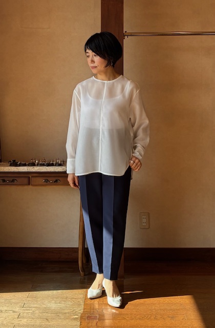 LINEUP シアーブラウス Women'sTops ほど良い透け感とハリのある素材を使用したプルオーバーブラウス。ナチュラルなタッチでシワになりにくいのが魅力です。クルーネックのTブラウスデザインでミニマルで繊細な一枚。インナーを着てシアーな一枚着としてはもちろん、様々なアイテムとのレイヤードアイテムとしても重宝します。 ポリエステル60% コットン40% 品名シアーブラウス 品番BL-1005Q ブランド qualite サイズ フリー カラー ホワイト 価格 ¥19,800(税込) この商品について問い合わせる 商品 お名前(必須) メールアドレス(必須) お問い合わせ内容(必須) このサイトはreCAPTCHAによって保護されており、Googleプライバシーポリシーと利用規約が適用されます。 シェア 投稿 ブックマーク LINE Pinterest コピー HOME LINEUP qualite シアーブラウス