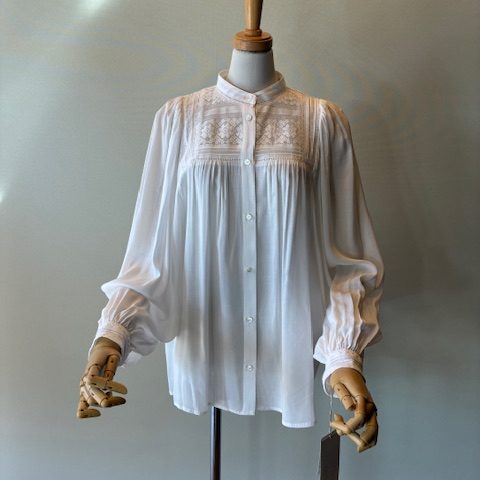LINEUP 刺しゅうブラウス Women's なめらかでシアー感のある生地に丁寧な刺しゅうを施したブラウス。シンプルなデザインのシャツに変化を持たせ、上品な雰囲気を醸し出しています。一枚での着用はもちろん、ジャケットやカーディガンなどから見えるレースがスタイリングの鮮度を上げてくれます。 ポリエステル52% レーヨン48% 刺しゅう部 コットン35% レーヨン35% ポリエステル30% 品名刺しゅうブラウス 品番BL-5910CF ブランド cafune サイズ 38 カラー ホワイト 価格 ¥20,900(税込) この商品について問い合わせる 商品 お名前(必須) メールアドレス(必須) お問い合わせ内容(必須) このサイトはreCAPTCHAによって保護されており、Googleプライバシーポリシーと利用規約が適用されます。 シェア 投稿 ブックマーク LINE Pinterest コピー HOME LINEUP cafune 刺しゅうブラウス