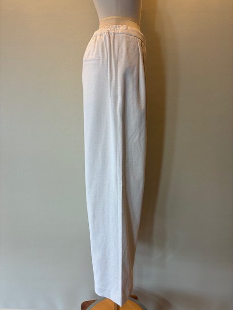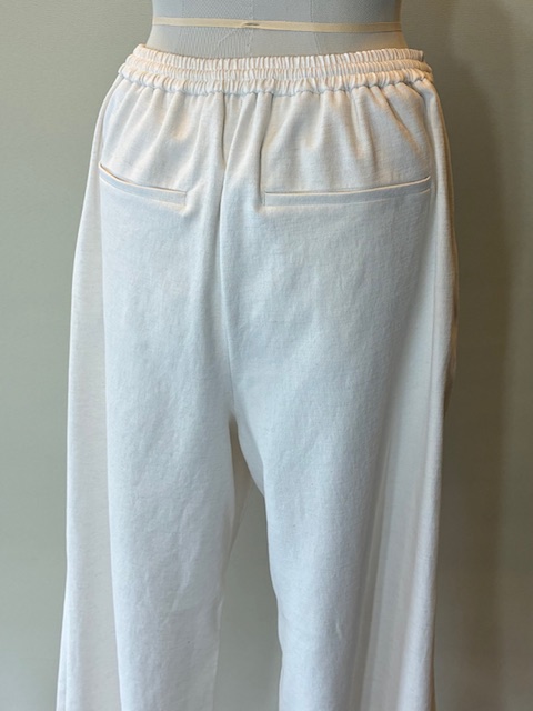 吸水速乾、接触冷感、UVカット、透け防止、ストレッチ機能を備えたオックス素材を使用しています。麻混でドライなタッチと柔らかな風合いが特徴です。腰回りはすっきりとタックをいれたワイドシルエットで立体的なフォルム。ボリュームトップス、コンパクトトップスいずれも相性の良いパンツです。同素材のトップスとセットアップになります。 ポリエステル78% コットン15% 麻7%