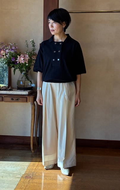 LINEUP ポロニット Women'sTops ソフトな肌触りととろみのあるハイゲージニットを使用したポロニット。シワになりにくく速乾性があるのが特徴。メンズライクになりがちなポロをオープンダブル仕様に襟をスクエアに開けることで、女性らしさを引き立てます。 ポリエステル53% コットン28% ナイロン15% ポリウレタン4% 品名ポロニット 品番NT-1520IK ブランド IKITSUKE サイズ 38 カラー ブラック 価格 ¥19,800(税込) この商品について問い合わせる 商品 お名前(必須) メールアドレス(必須) お問い合わせ内容(必須) このサイトはreCAPTCHAによって保護されており、Googleプライバシーポリシーと利用規約が適用されます。 シェア 投稿 ブックマーク LINE Pinterest コピー HOME LINEUP IKITSUKE ポロニット