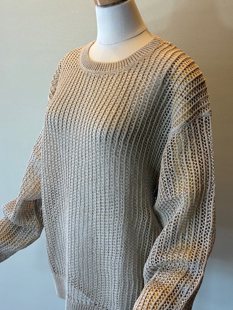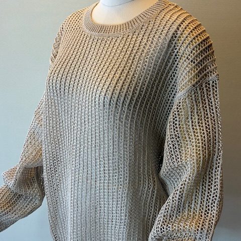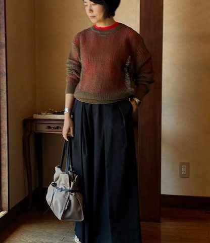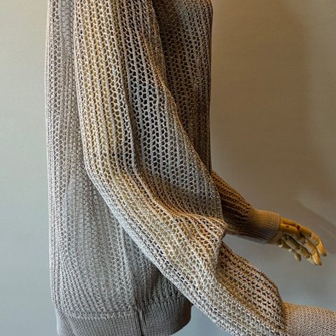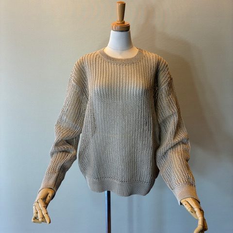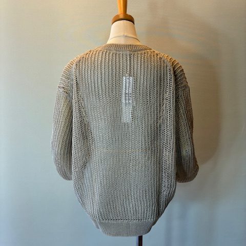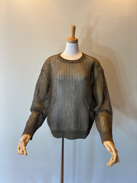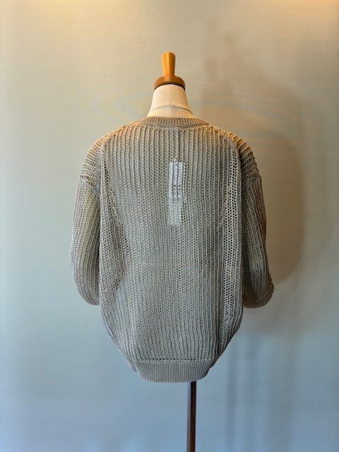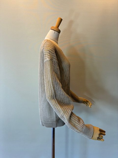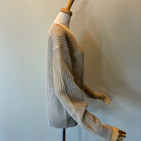 繊細な透かし編みが印象的なコットンシリーズ。リネンのようなシャリ感とドライなタッチが特徴のコットン糸をしようしています。コンパクトなネックラインとほど良いゆとりのあるボディとのバランスがヘルシーな印象。透け感を生かしてさまざまなインナーとのレイヤードが楽しめます。 コットン100%