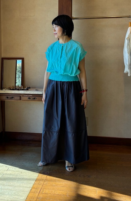 LINEUP シャーリングブラウス Women'sTops ほど良いハリのあるインド綿を使用したとても涼しげな印象のブラウス。袖と裾部分にシャーリングを施し、自然な絞りが出るシルエットでスタイリングしやすい一枚です。ワイドパンツやスカートと相性が良く、また小柄な方にもおすすめです。 コットン100% 品名シャーリングブラウス 品番BL-5353IK ブランド IKITSUKE サイズ 38 カラー ホワイト 価格 ¥17,600(税込) COLOR VARIATION ブルー ブラック この商品について問い合わせる 商品 お名前(必須) メールアドレス(必須) お問い合わせ内容(必須) このサイトはreCAPTCHAによって保護されており、Googleプライバシーポリシーと利用規約が適用されます。 シェア 投稿 ブックマーク LINE Pinterest コピー HOME LINEUP IKITSUKE シャーリングブラウス