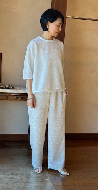 LINEUP プルオーバーニット Women'sTops 透明糸とノットヤーンを使用し、特殊な編み方で表情のある表面感に仕上げたニットシリーズ。ボディ、スリーブ共にゆったりとしたシルエットでリラックスムードのある一枚です。襟ぐりの装飾テープや襟のフリンジのディテールがきれいなアクセントに。 コットン45% ナイロン37% ポリエステル16% レーヨン2% 品名プルオーバーニット 品番NT-2207B ブランド Ballsey サイズ フリー カラー ホワイト 価格 ¥23,100(税込) この商品について問い合わせる 商品 お名前(必須) メールアドレス(必須) お問い合わせ内容(必須) このサイトはreCAPTCHAによって保護されており、Googleプライバシーポリシーと利用規約が適用されます。 シェア 投稿 ブックマーク LINE Pinterest コピー HOME LINEUP Ballsey プルオーバーニット