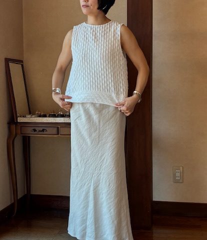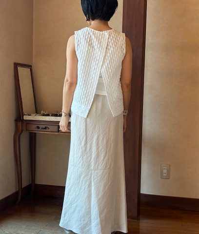 LINEUP カットジャガートノースリーブブラウス Women'sTops 幾可柄の凹凸がある表面感のカットジャガート素材が魅力のノースリーブブラウス。身幅はゆったりとしたシルエットで快適な着心地です。夏の一枚着としてはもちろん、ジャケットなどのインナーとしても活躍します。 コットン90% ナイロン10% 品名カットジャガートノースリーブブラウス 品番BL-1203B ブランド Ballsey サイズ フリー カラー ホワイト 価格 ¥19,800(税込) COLOR VARIATION ブラック この商品について問い合わせる 商品 お名前(必須) メールアドレス(必須) お問い合わせ内容(必須) このサイトはreCAPTCHAによって保護されており、Googleプライバシーポリシーと利用規約が適用されます。 シェア 投稿 ブックマーク LINE Pinterest コピー HOME LINEUP Ballsey カットジャガートノースリーブブラウス