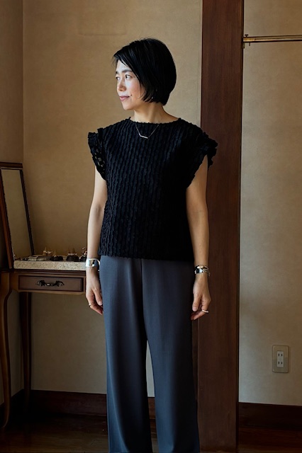 LINEUP カットジャガートブラウス Women'sTops 幾可柄の凹凸がある表面感のカットジャガート素材が魅力のフレンチスリーブブラウス。身幅はゆったりとしたシルエットで快適な着心地です。夏のスタイリングを一段と華やかにしてくれる一枚です。 コットン90% ナイロン10% 品名カットジャガートブラウス 品番BL-1204B ブランド Ballsey サイズ フリー カラー ホワイト 価格 ¥23,100(税込) COLOR VARIATION ブラック この商品について問い合わせる 商品 お名前(必須) メールアドレス(必須) お問い合わせ内容(必須) このサイトはreCAPTCHAによって保護されており、Googleプライバシーポリシーと利用規約が適用されます。 シェア 投稿 ブックマーク LINE Pinterest コピー HOME LINEUP Ballsey カットジャガートブラウス