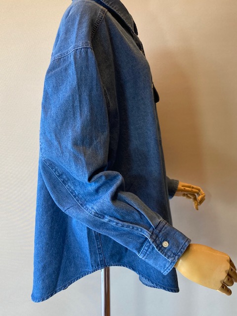 程よい厚みのミドルオンスデニムシャツは、シーズンをまたいで着まわせる万能アイテム。シンプルなワイドシルエットとしなやかなデニム素材が上品なカジュアル感を演出します。シャツとしてはもちろん、羽織りとしても活躍します。 コットン100%