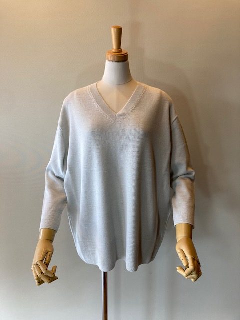 ドライ感と柔らかさを兼ね備えた綿麻糸をカノコ編みにしたGALERIE VIE定番ニットシリーズ。ゆったりとしたシルエットにドロップショルダーでリラックスした雰囲気。シンプルなデザインで一枚でサマになり、幅広いスタイリングで活躍します。