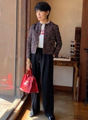 LINEUP ツイードノーカラージャケット Women'sTops 数種類の糸を織り込んで仕上げたカラフルで独特な凹凸感のあるツイード素材。クラシカルな印象ですが、見た目に反して軽くカーディガン感覚で羽織れ、カジュアルからエレガントなスタイルまで幅広いシーンで活躍します。 ポリエステル81% レーヨン13% コットン6% 裏地 ポリエステル 品名ツイードノーカラージャケット 品番JK-7132B ブランド Ballsey サイズ 36 カラー ブラック 価格 ¥37,400(税込) この商品について問い合わせる 商品 お名前(必須) メールアドレス(必須) お問い合わせ内容(必須) このサイトはreCAPTCHAによって保護されており、Googleプライバシーポリシーと利用規約が適用されます。 シェア 投稿 ブックマーク LINE Pinterest コピー HOME LINEUP Ballsey ツイードノーカラージャケット