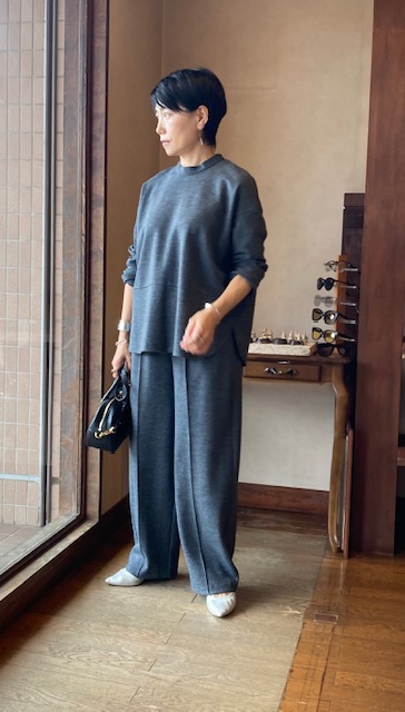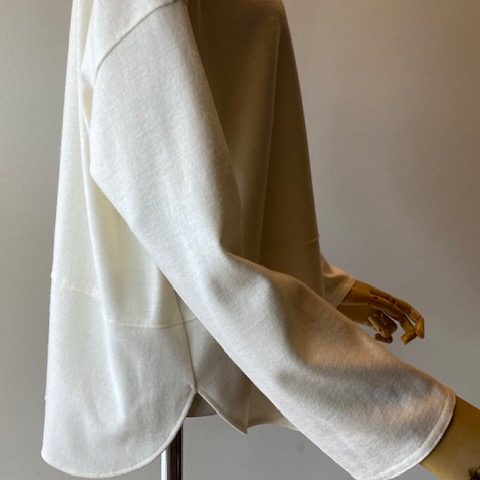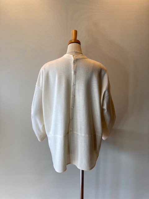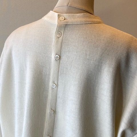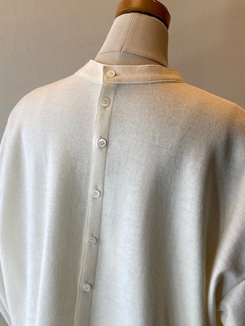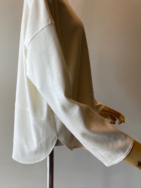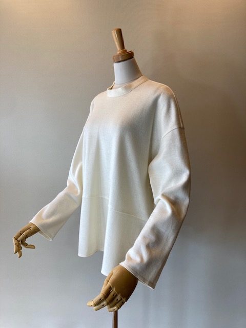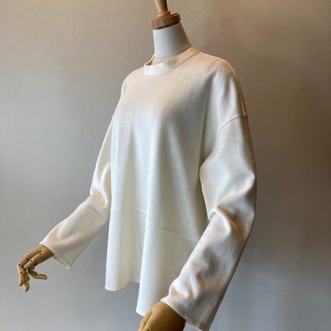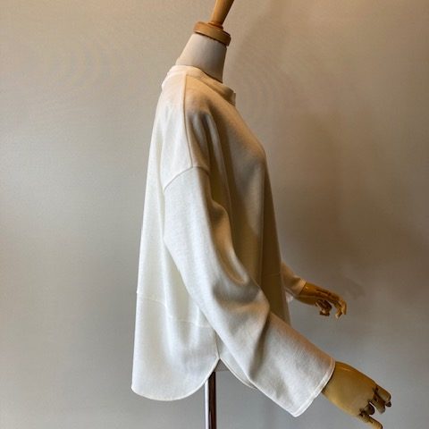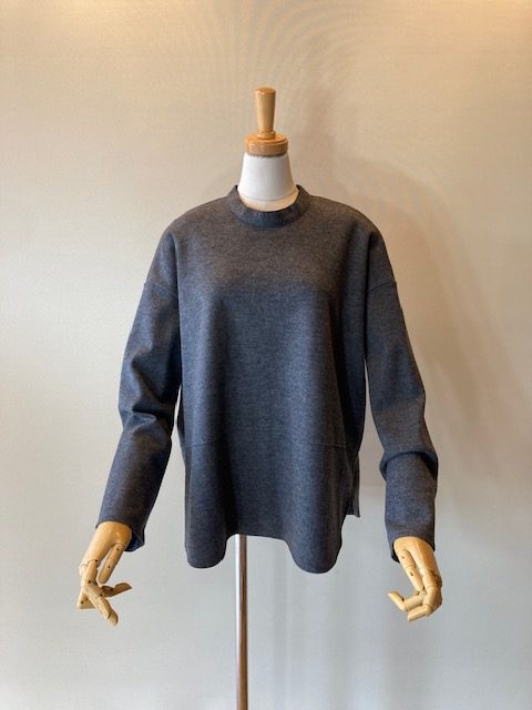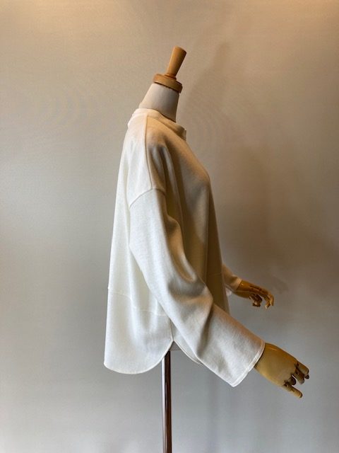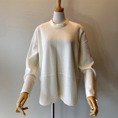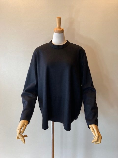 良質でソフトなウールを使用したスムース素材シリーズ。ハリとコシがあり、布帛のような雰囲気とジャージーならではの軽くしなやかな着心地が魅力です。ゆったりとしたボディとすっきりとしたスリーブのバランスが絶妙で、前後どちらでも着用できるので、さまざまなスタイリングに活躍します。 ウール100%