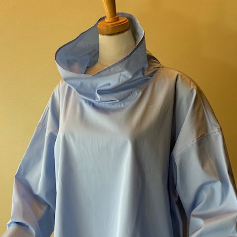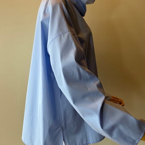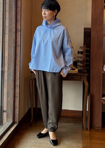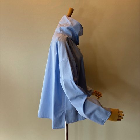 イタリア製の上質なコットンポプリン素材シリーズ。高密度ならではのハリコシと膨らみがあり、シーズンレスで着用いただけます。ネック部分はそのまま着用するだけで、くしゅっと自然なシワがよりニュアンス感があり、カジュアルさときちんと感を併せ持つアイテムです。 コットン100%