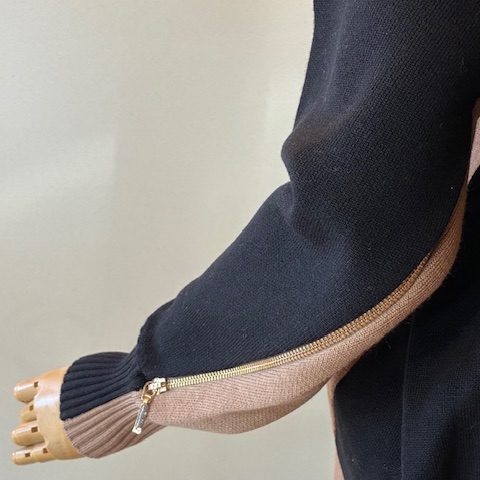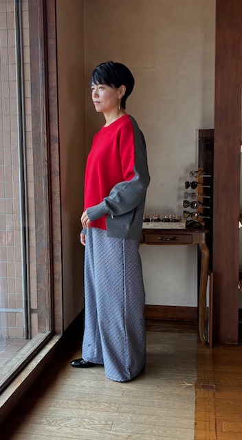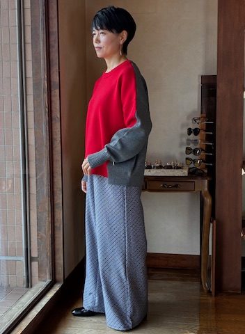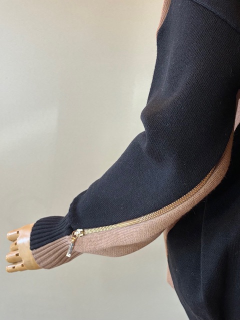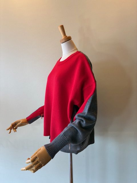 さらっとしたタッチで程よい膨らみとハリがあるスポンディッシュな素材感。オーバーシルエットながら光沢のある整った編地で、品よくスタイリッシュにまとまります。袖下のジップや脇下からフロントに切り替えたバイカラーラインが、動きやこなれ感を演出。あらゆるボトムに対応する汎用性も魅力の一つです。 ポリエステル52% ウール16% アクリル16% ナイロン16%