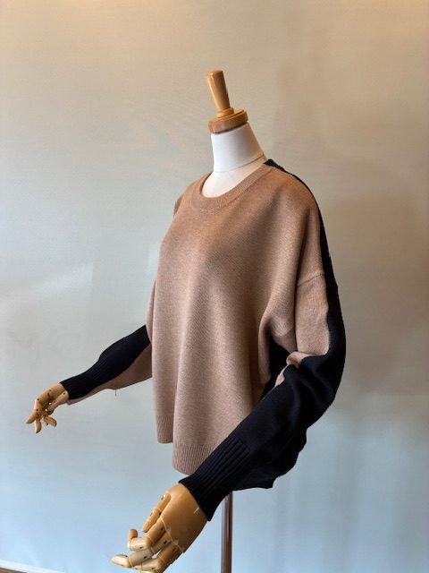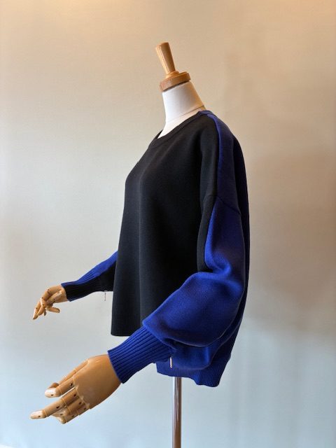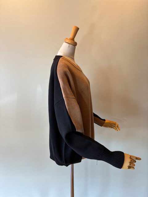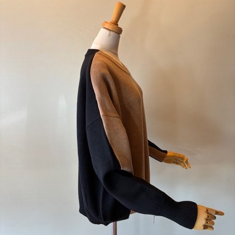 バイカラークルーネックニット