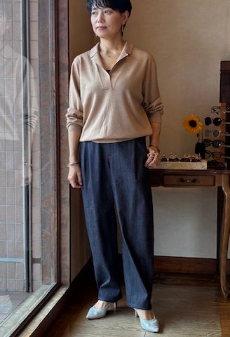 LINEUP タックセミワイドデニム Women'sBottoms ワンタックのセミワイドデニムパンツ。やや光沢がありストレッチの効いたデニム地は快適な穿き心地です。ハイウエストで腰回りがすっきり見え、脚長効果もあるテーパードライン。合わせやすいシルエットでニットやブラウスだけでなく、ツイードアイテムとの合わせで、カジュアルダウンなスタイリングも◎。 コットン66% レーヨン26% ポリエステル6% ポリウレタン2% 品名タックセミワイドデニム 品番PT-6645PN ブランド PASSIONE サイズ 36 38 40 カラー インディゴ 価格 ¥19,800(税込) この商品について問い合わせる 商品 お名前(必須) メールアドレス(必須) お問い合わせ内容(必須) このサイトはreCAPTCHAによって保護されており、Googleプライバシーポリシーと利用規約が適用されます。 シェア 投稿 ブックマーク LINE Pinterest コピー HOME LINEUP PASSIONE タックセミワイドデニム