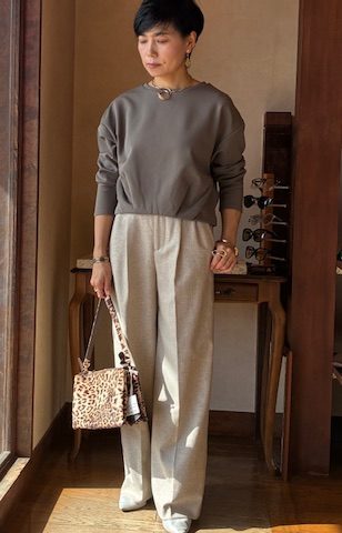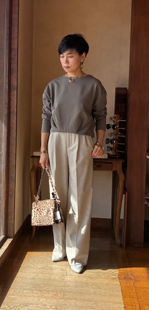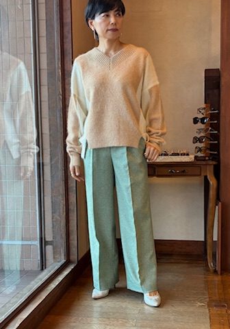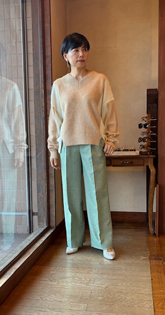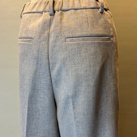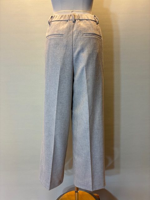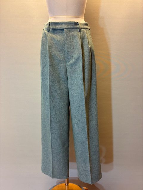ウール糸とポリエステル糸をミックスし、シルクネップとポリウレタンを使用したストレッチツイード素材です。ワイドシルエットながら裾にかけてテーパードしたシルエット。バックウエストはゴム仕様で快適な穿き心地です。合わせるボトムを選ばないウォーム感のあるアイテムです。 ポリエステル54% ウール36% ナイロン4% シルク4% アクリル1% ポリウレタン1%