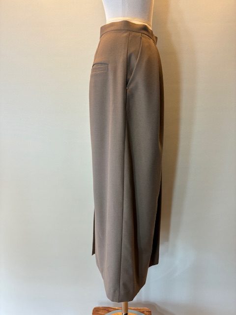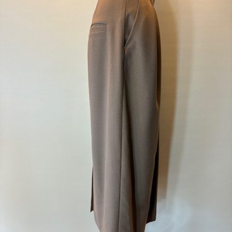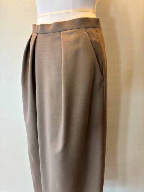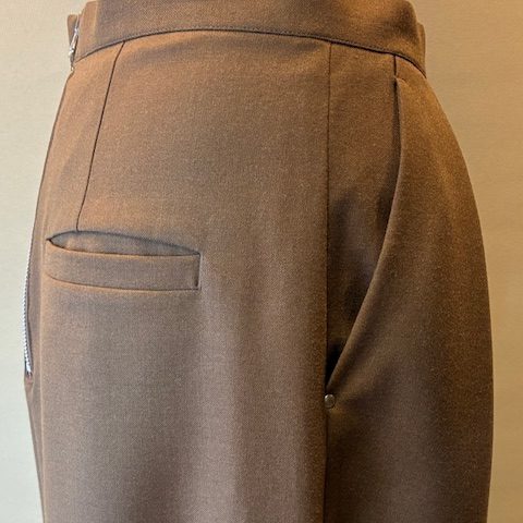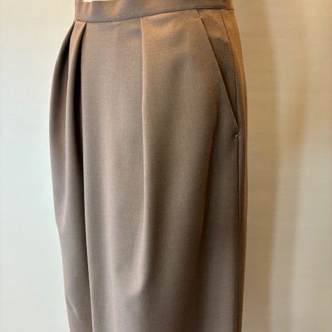 ウール混のストレッチサキソニー素材を使用しています。ソフトな風合いと程よいハリ感があり、シワになりにくく手洗いOKなイージーケアが特徴です。暖かみのある生地感でロングシーズン着用になれます。不規則なタック使いがデザインポイントで、身体のラインがあまり出ないような程よいサイズ感。同素材のトップスとのセットアップもおすすめです。 レーヨン33% ポリエステル33% ウール29% ポリウレタン5%
