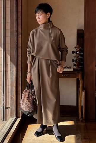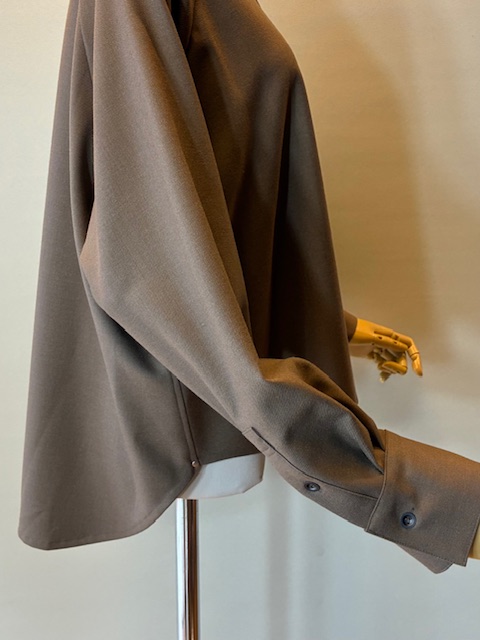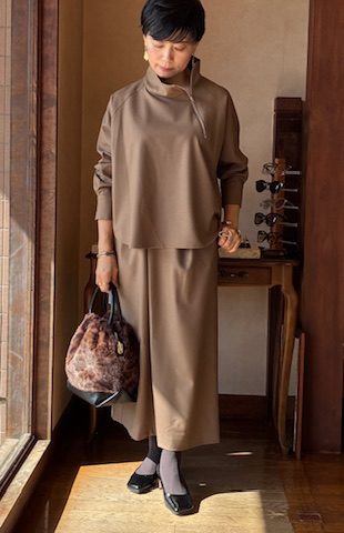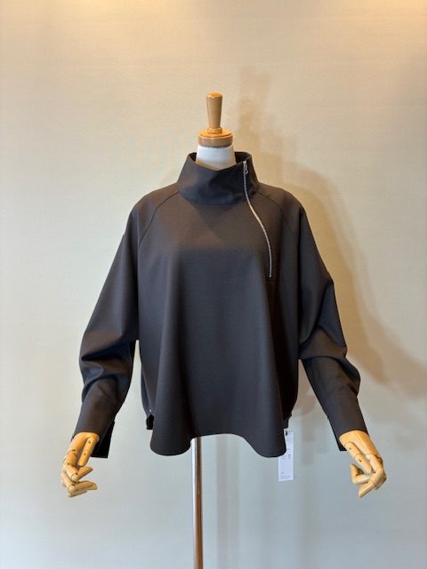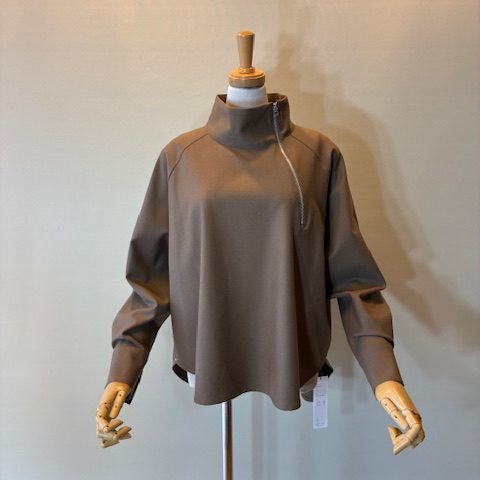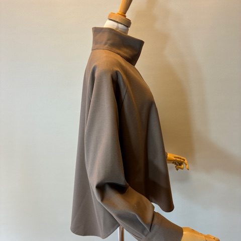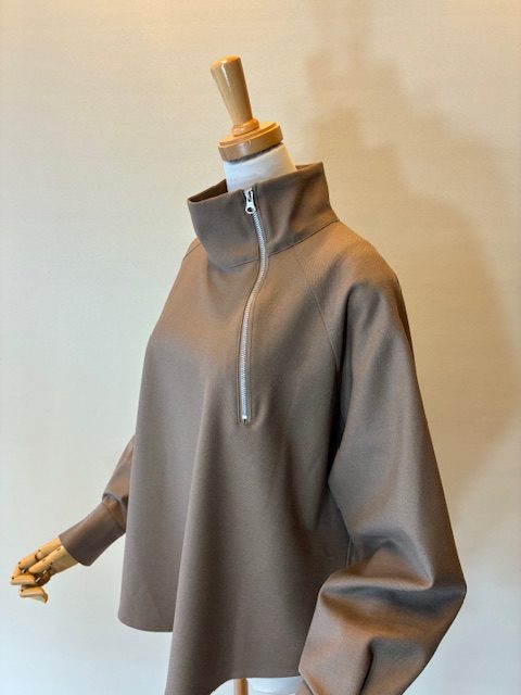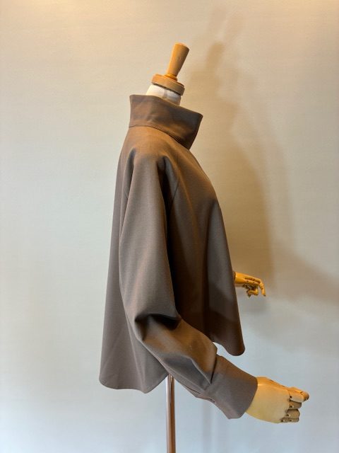 ウール混のストレッチサキソニー素材を使用しています。ソフトな風合いと程よいハリ感があり、シワになりにくく手洗いOKなイージーケアが特徴です。暖かみのある生地感でロングシーズン着用になれます。ZIPの開き具合で様々な表情が楽しめ、タートル等とのレイヤードも素敵です。同素材のスカートとのセットアップもおすすめです。 レーヨン33% ポリエステル33% ウール29% ポリウレタン5%