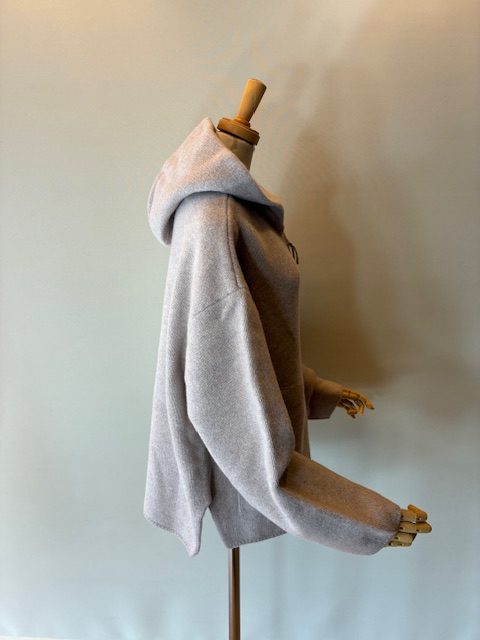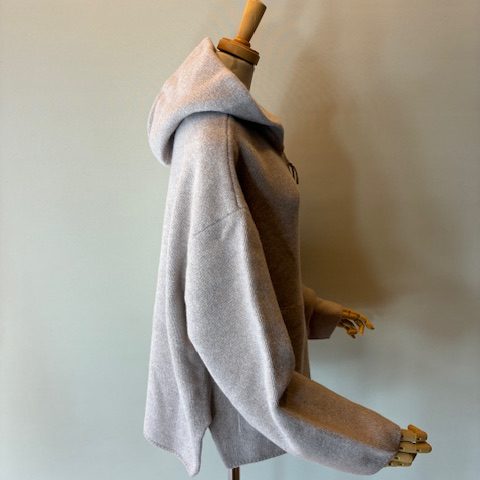 オーストラリアの子羊の毛を原料に、高密度なダブルフェイス編みにしたニットブルゾン。毛質が非常にやわらかく膨らみと自然な弾力性があるのが特徴です。ゆったりとしたボックスシルエットで、ライトなアウターとしても、コートのインナーとしても活躍します。 ウール100%