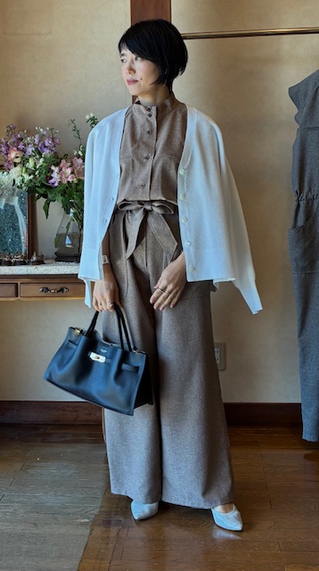 着用アイテム ブランド 価格(税込) カーディガン PASSIONE ¥15,400 ブラウス Ballsey ¥19,800 パンツ PASSIONE ¥11,000 レザーバッグ VIOLAd'ORO ¥31,900 COORDINATE No.cdw-11120